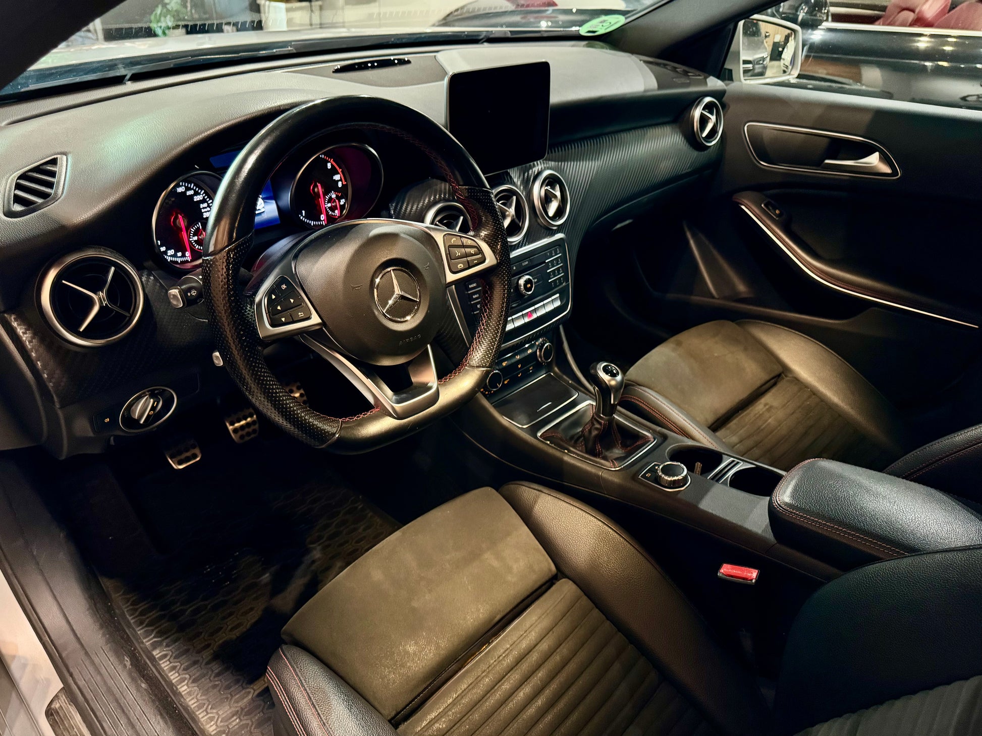 -Asientos de piel y alcantara con ribete rojo AMG